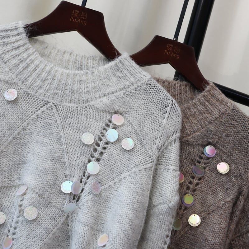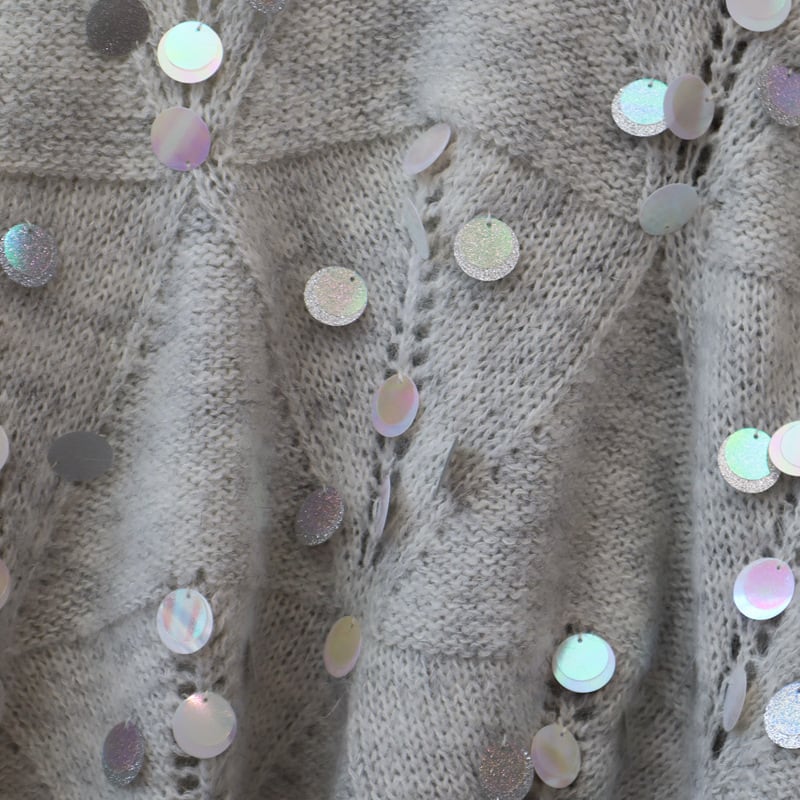 スパンコールデコレーション ジオメトリックモチーフ モヘアニット ライトグレー NI00287