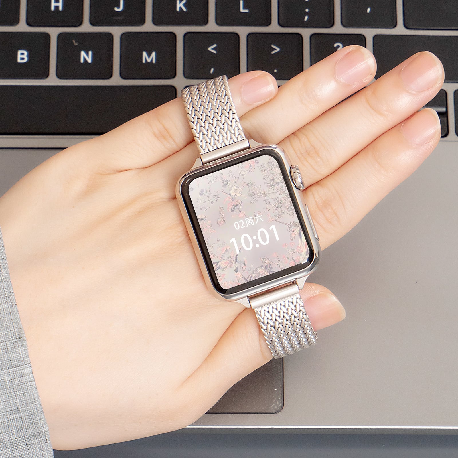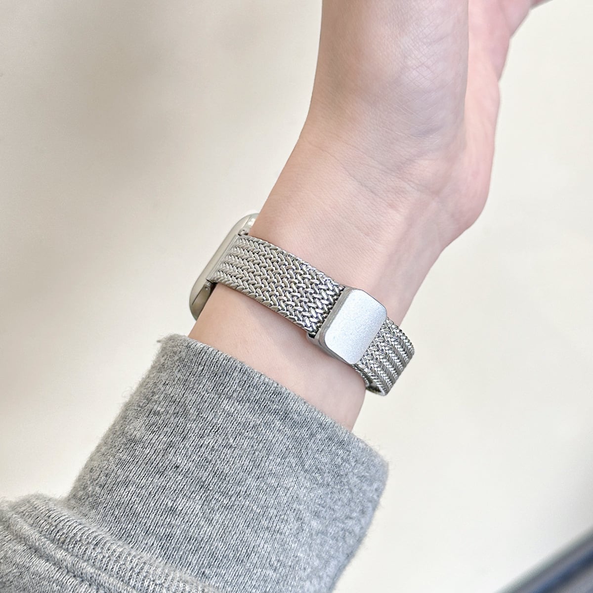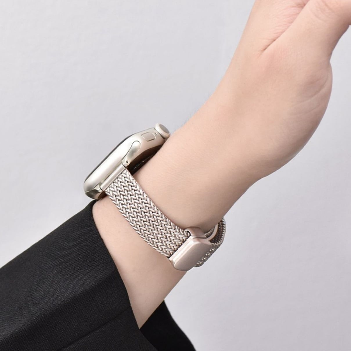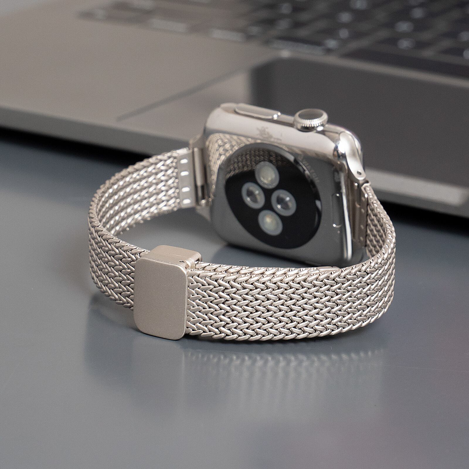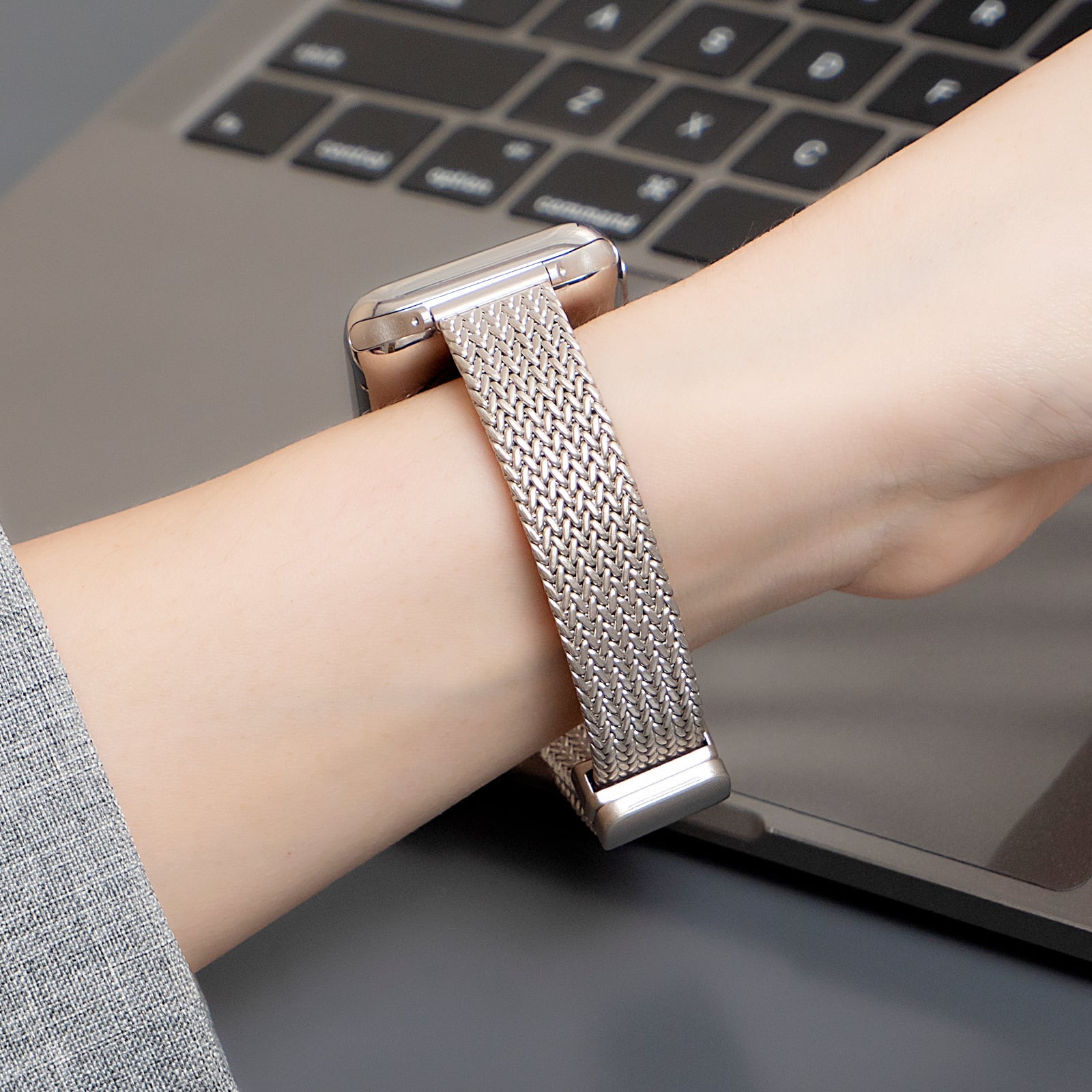 メタルメッシュベルトがスタイリッシュなApple Watchバンドです。エレガントなメタルメッシュとマグネット式のバックルでスマートウォッチを上品にスタイリングできます。ブレスレット感覚でベルトも着け替えたくなる、オシャレなデザインです。