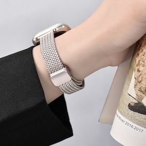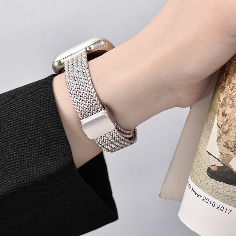 メタルメッシュベルトがスタイリッシュなApple Watchバンドです。エレガントなメタルメッシュとマグネット式のバックルでスマートウォッチを上品にスタイリングできます。ブレスレット感覚でベルトも着け替えたくなる、オシャレなデザインです。