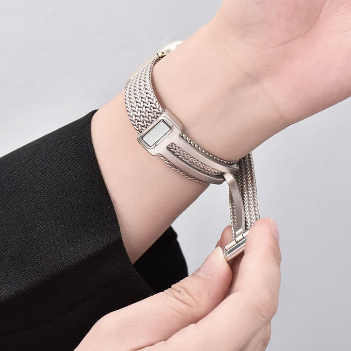 メタルメッシュベルトがスタイリッシュなApple Watchバンドです。エレガントなメタルメッシュとマグネット式のバックルでスマートウォッチを上品にスタイリングできます。ブレスレット感覚でベルトも着け替えたくなる、オシャレなデザインです。