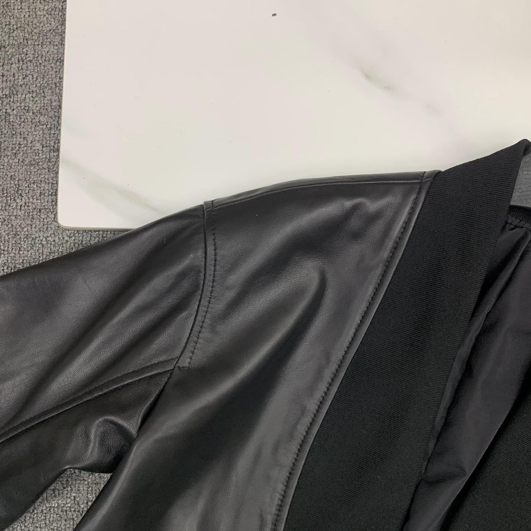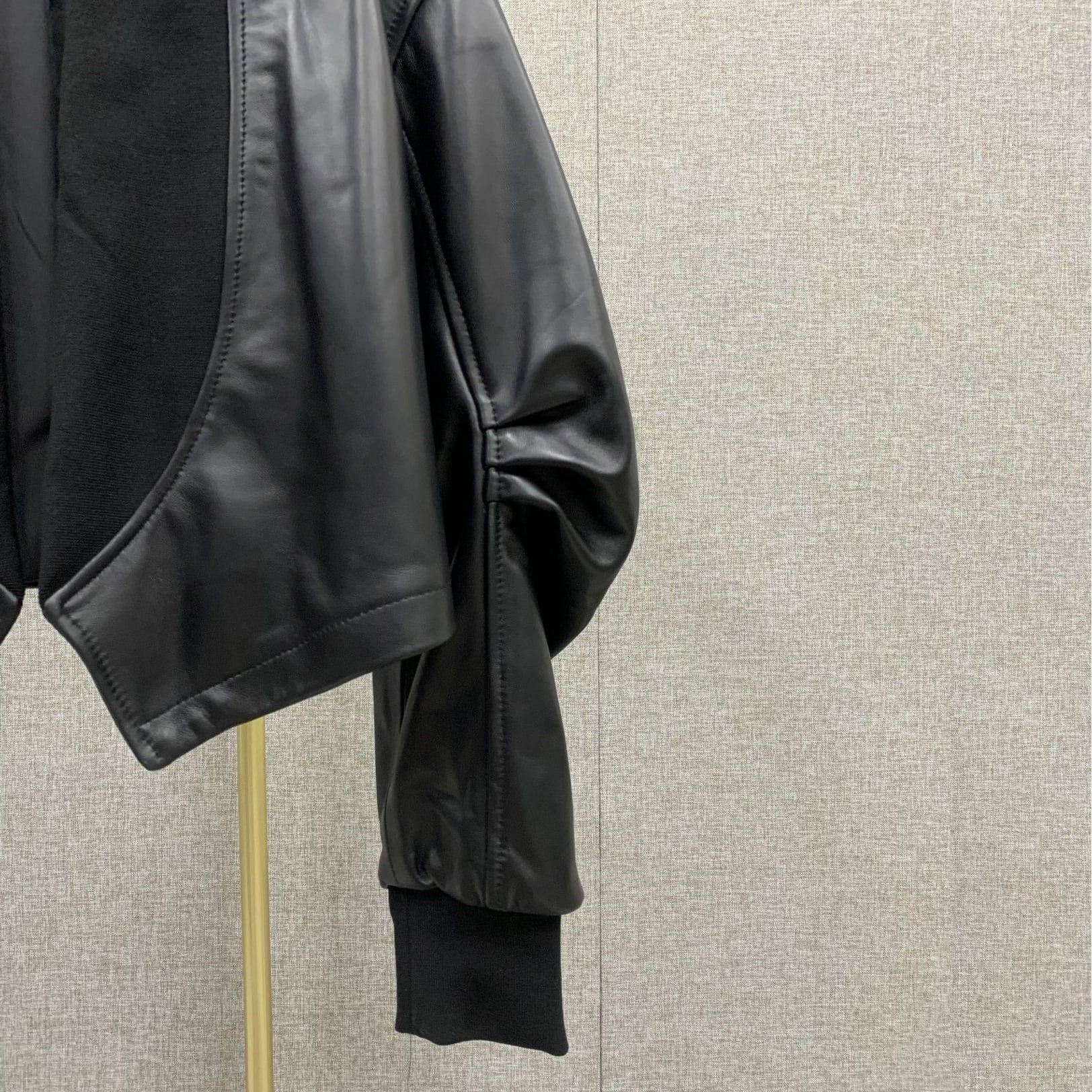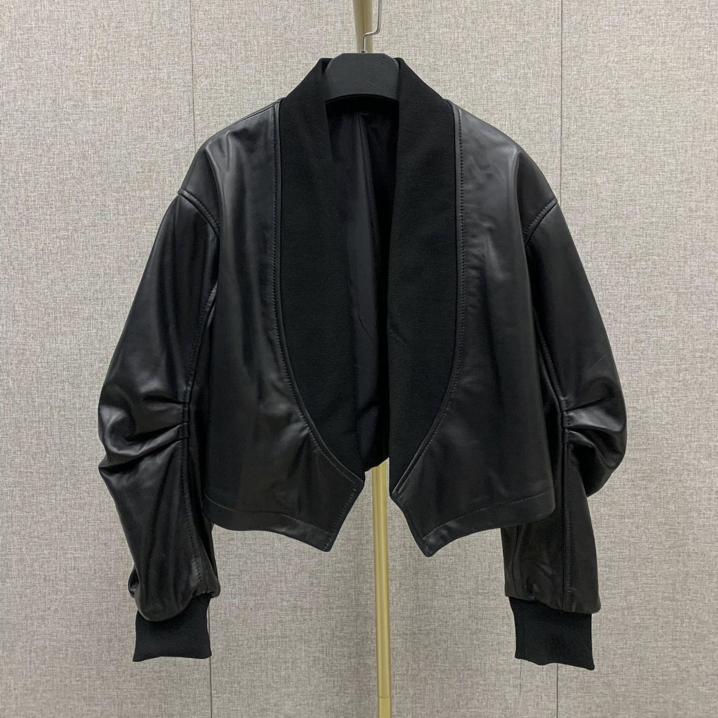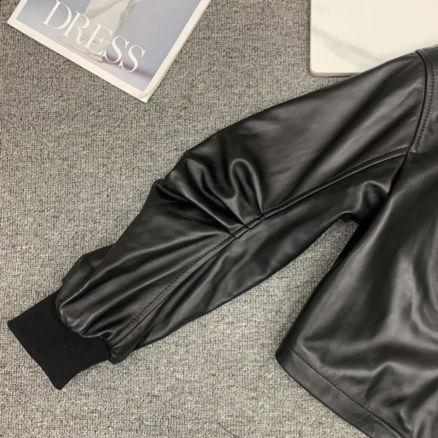 ラムスキン リブコンビネーション ノーカラーショートジャケット ブラック JK00067