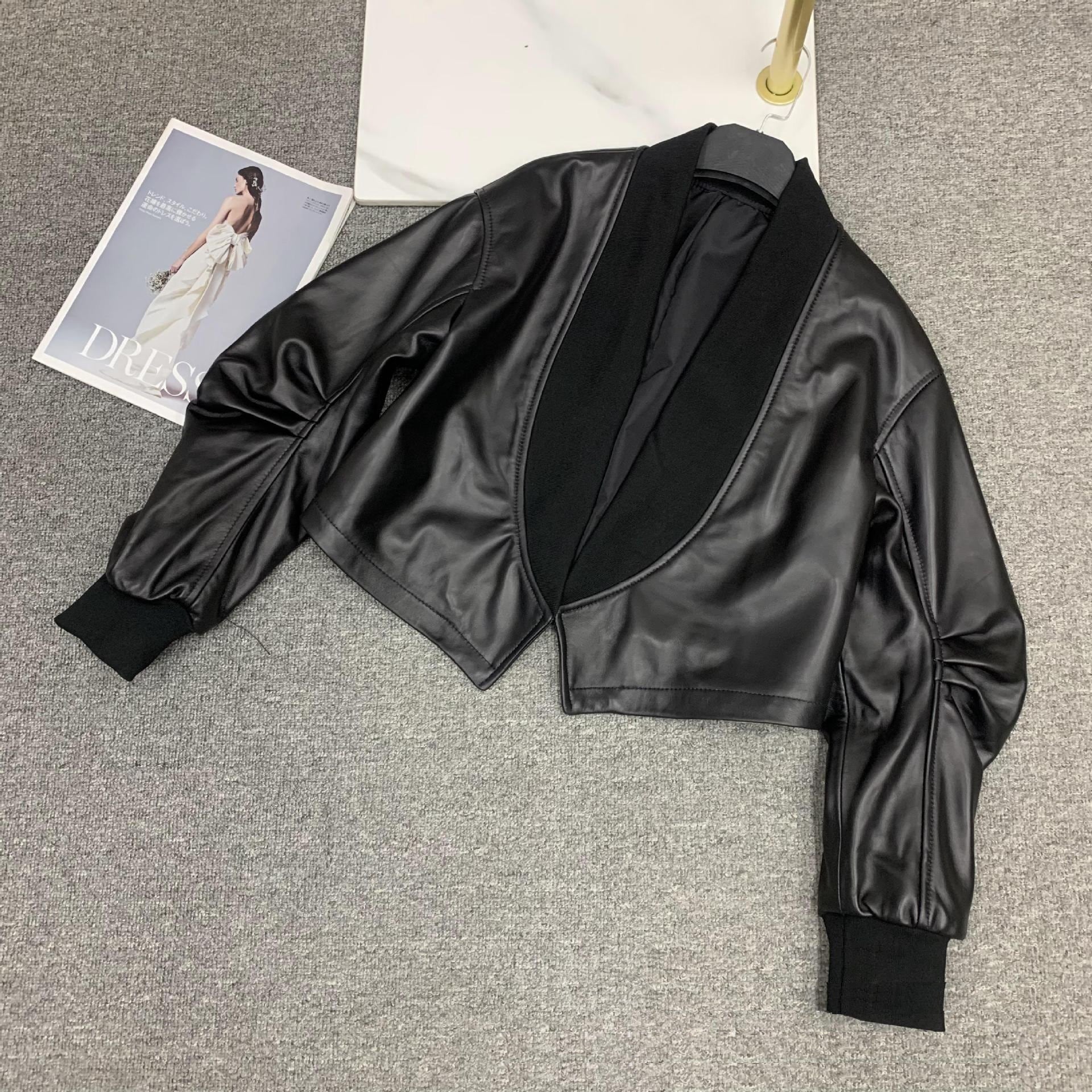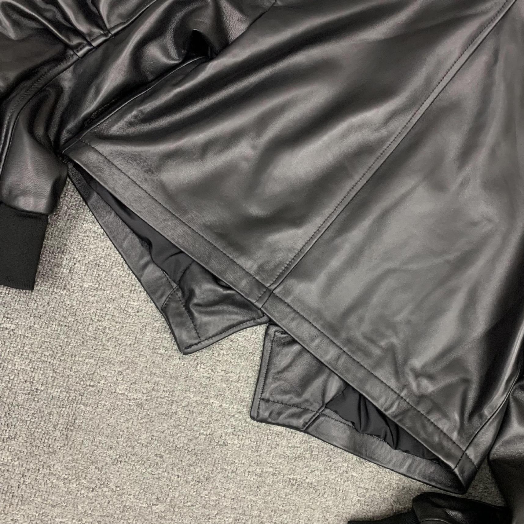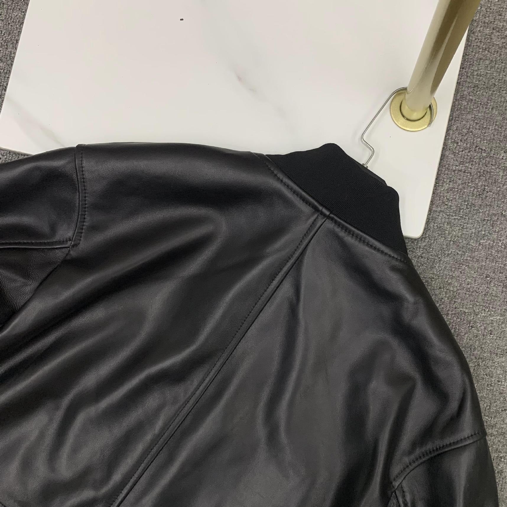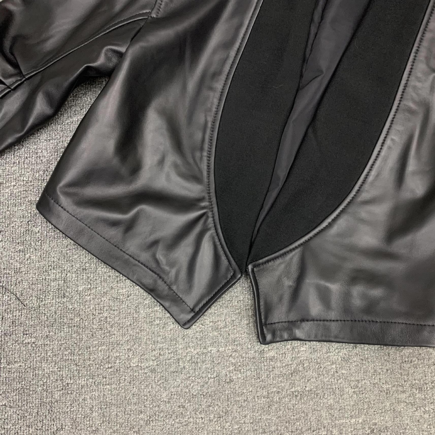 ラムスキン リブコンビネーション ノーカラーショートジャケット ブラック JK00067