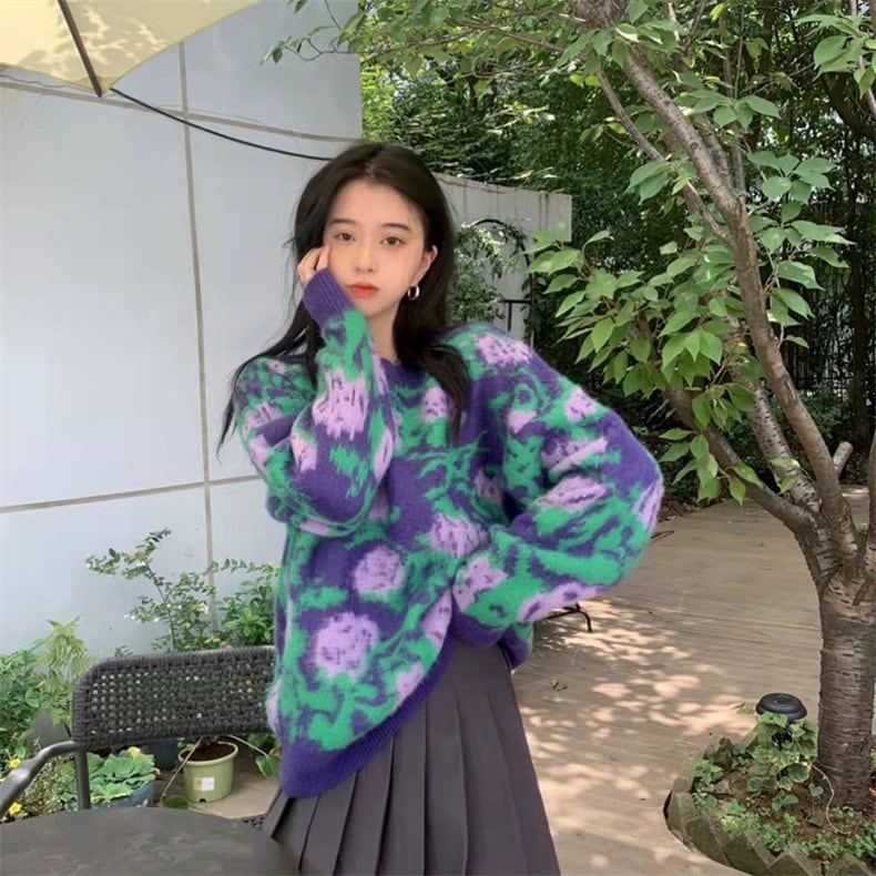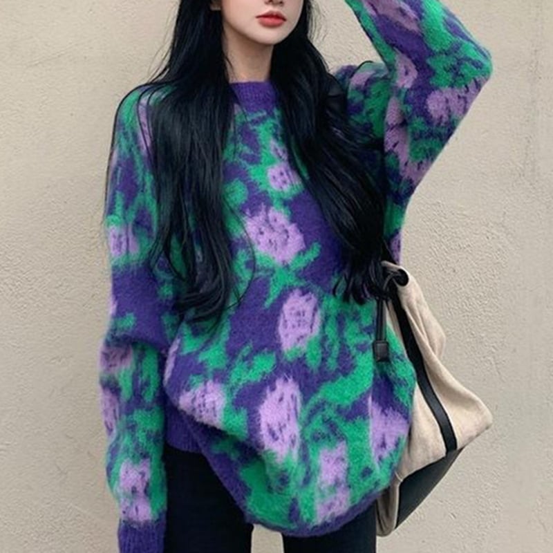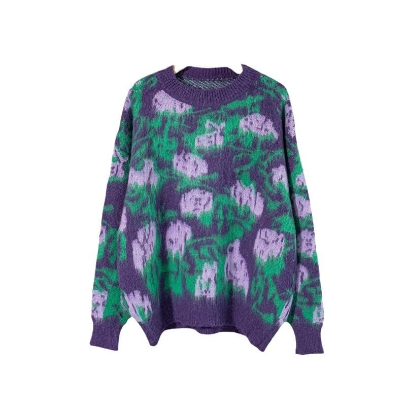 フラワーモチーフ モヘアニットセーター パープル NI00312