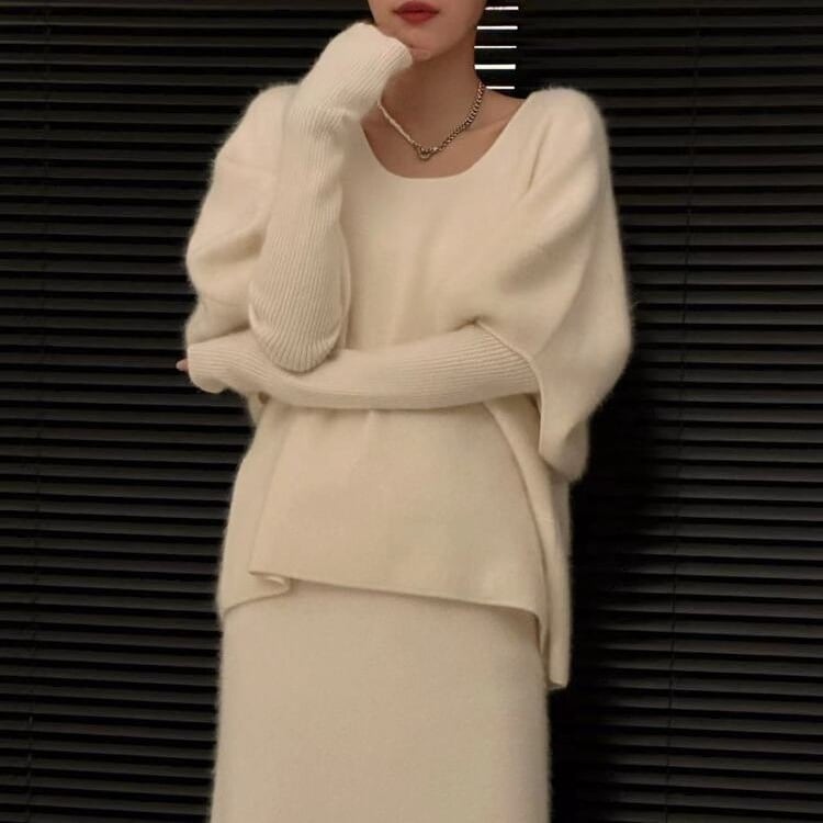 リブニットアームウォーマー+パフスリーブニット セットアップ アイボリー NI00310