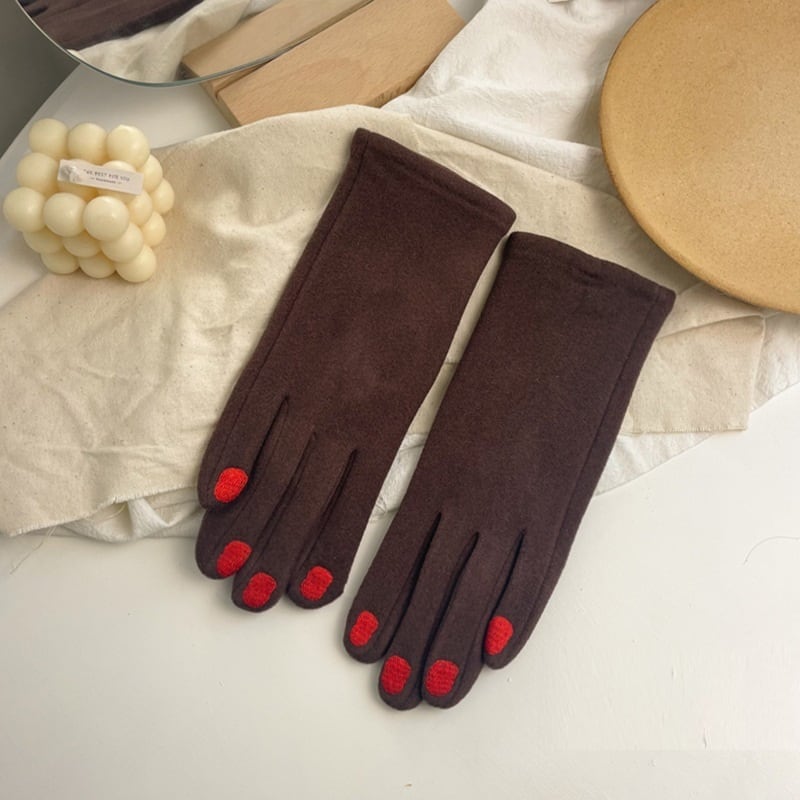 ネイルステッチ バイカラーニットグローブ・手袋(スマホ操作OK)ブラウン/レッド FK00062