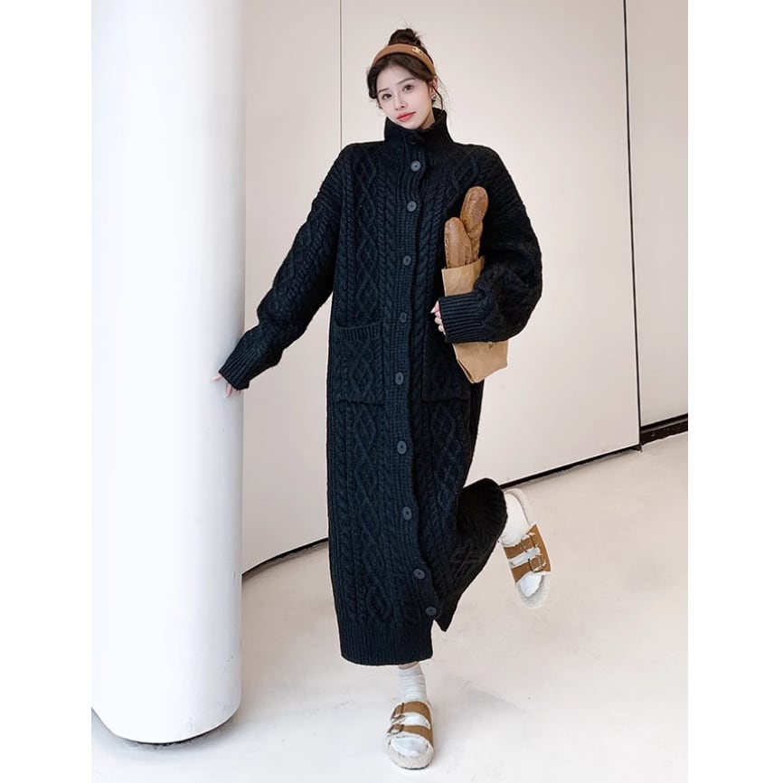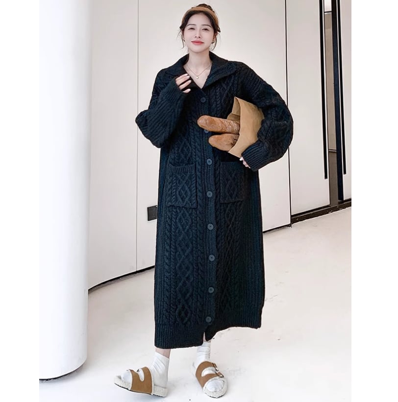 ケーブルニット ロングカーディガン・ニットコート ブラック NI00315