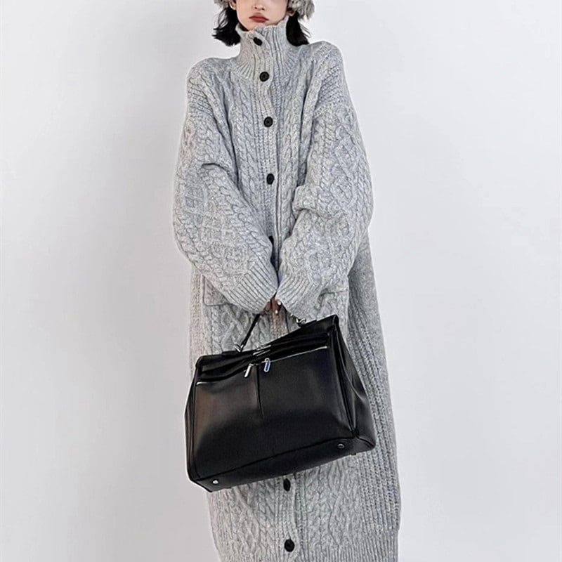 ケーブル編みのロングニットカーディガンです。幅広いアイテムと合わせやすいシンプルなデザインです。ざっくりとしたケーブル編みで少し肌寒い季節にはコートがわりにお使いいただけます。1年を通してカジュアルからエレガントなスタイルまで、幅広いスタイリングが楽しめます。