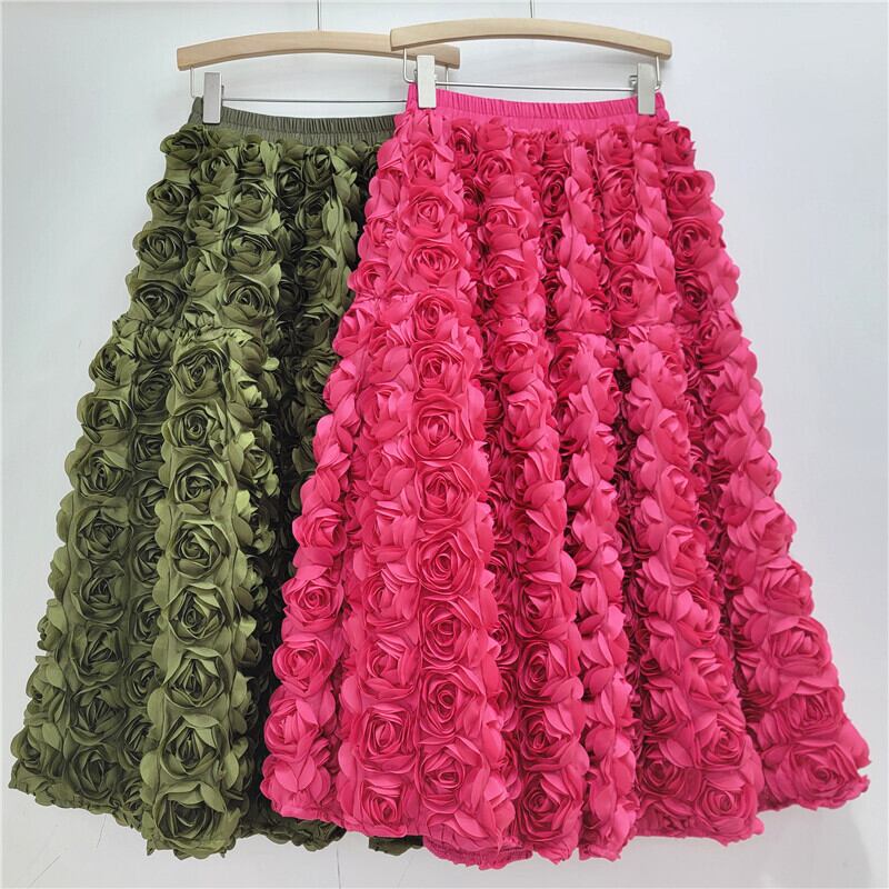 ローズデコレーション ロングフレアスカート マゼンタピンク SK00218