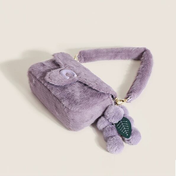 ブドウチャーム付き エコファーハンドバッグ・ショルダーバッグ ラベンダー BA00713