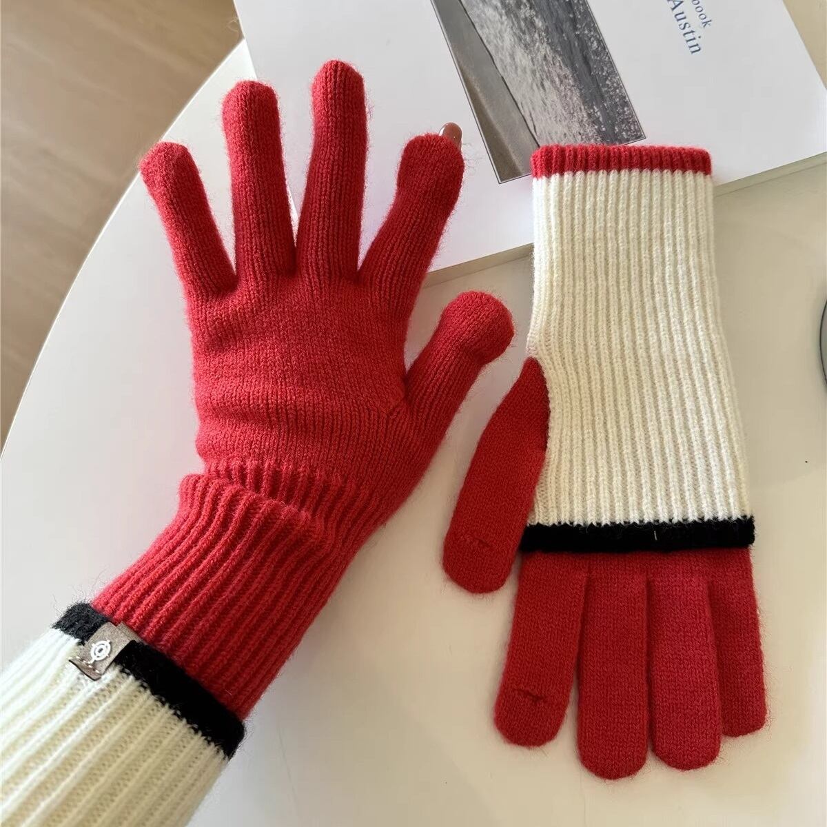 トリカラーミックス 3way ロングニットグローブ・手袋 レッド/アイボリー FK00083