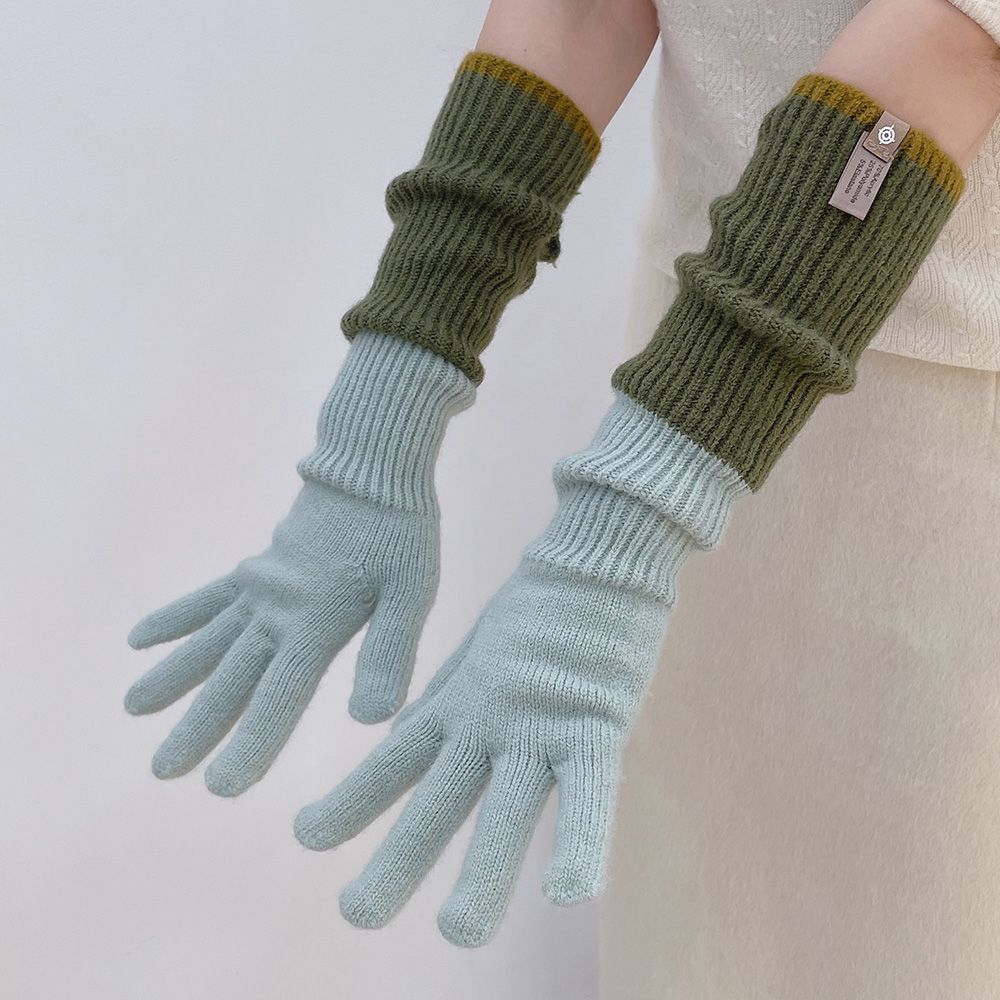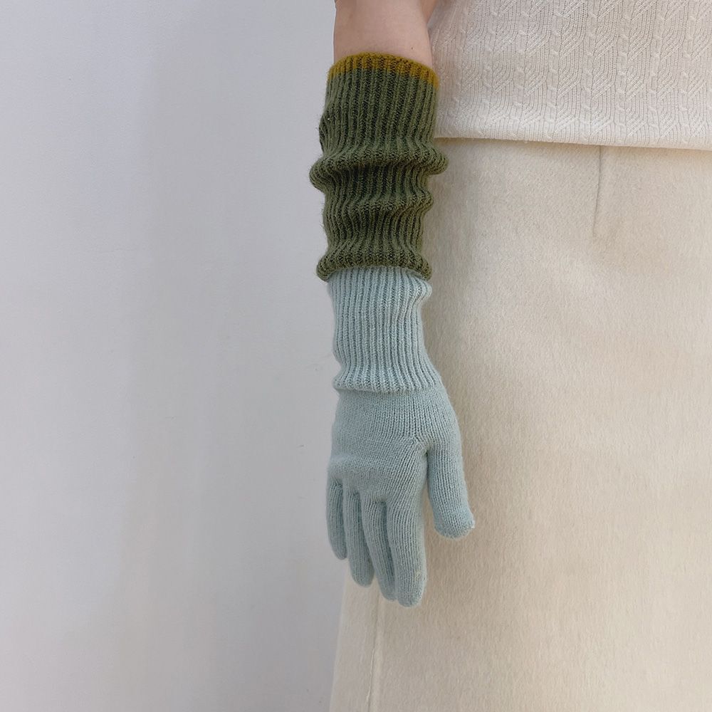 トリカラーミックス 3way ロングニットグローブ・手袋 セージ/モスグリーン FK00082