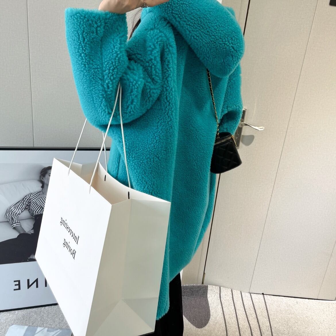フード+ポケット付き テディベア ミドルボアコート ターコイズ CT00114