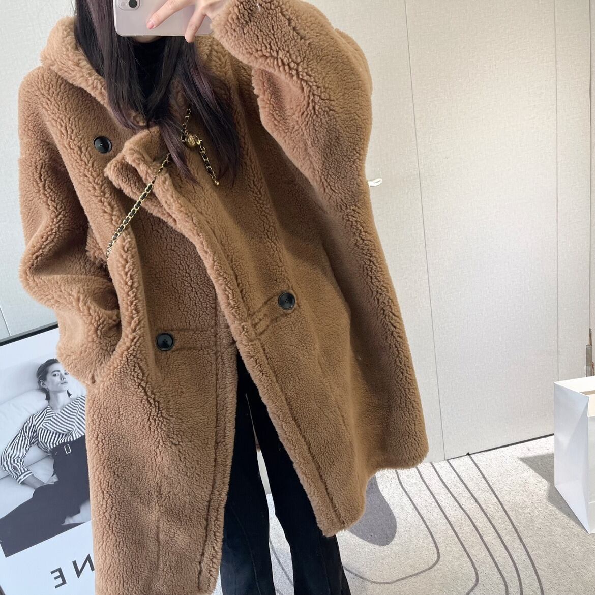 フード+ポケット付き テディベア ミドルボアコート ブラウン CT00111