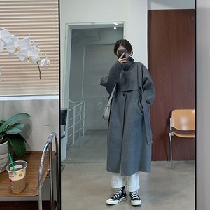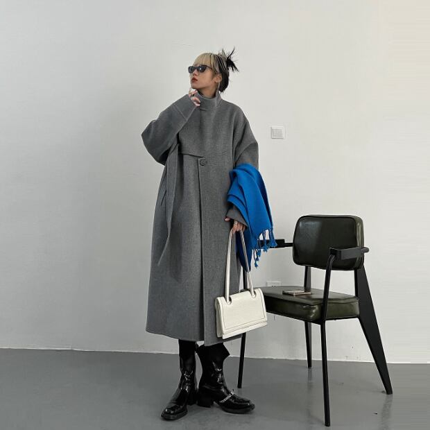 首元のストラップ、フロントの比翼、ボタンづかいなど、スタイリッシュなデザインのロング丈のコートです。落ち着いたカラーリングとこだわりのデザインで、ハイセンスな雰囲気に仕上がります。エレガントにも、デニム+スニーカーでカジュアルにも、幅広いスタイリングが楽しめます。インポートならではのユニークなデザインです。通勤にも、プライベートでもお使いいただけます◎