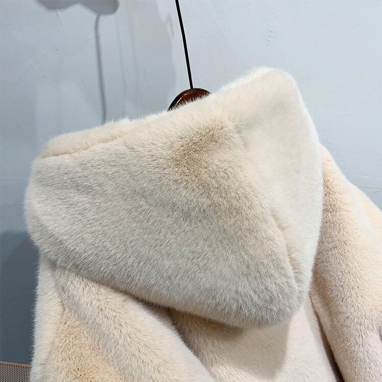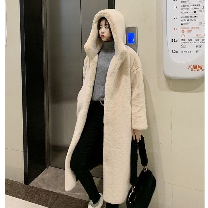 フード+ポケット付き エコファーロングコート アプリコットベージュ CT00108