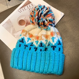 マルチカラーのモザイクアレンジがポイントのポンポン付きニットキャップです。カジュアルなスタイルだけでなく、エレガントなスタイルのアクセントとしてもおすすめです。美しいモザイク編みで、ニットキャップほどカジュアルになりすぎず、オトナ可愛いスタイリングが完成します。