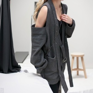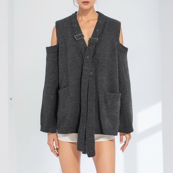 ショルダーカットオフ ストラップアレンジ ニットカーディガン ダークグレー NI00337