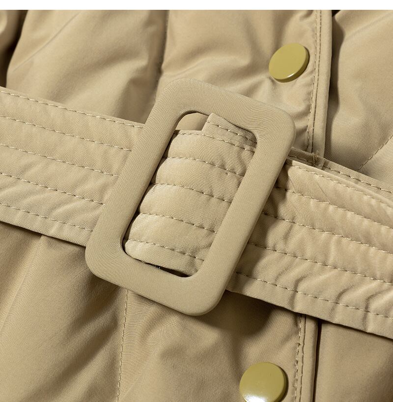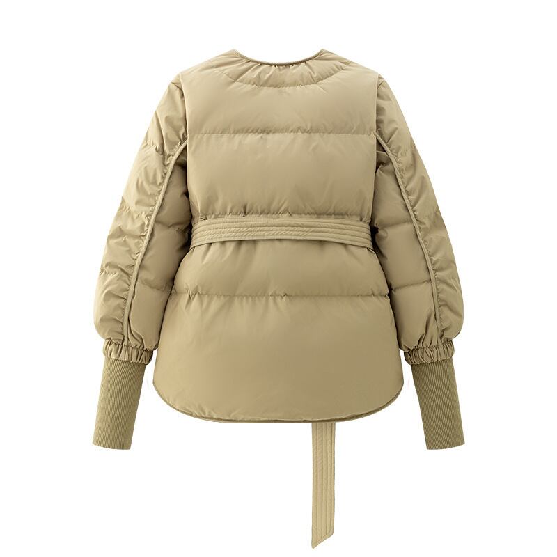 ノーカラー リブニットリスト ダウンジャケット(ウエストベルト付き)ベージュ CT00121