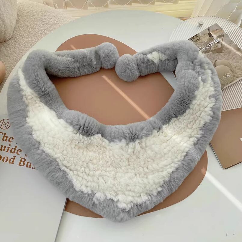 グレーのラビットファー+アイボリーのボアのコンビネーションがフェミニンなポンポン付きマフラーです。マフラーやストールとはまたちがう、ソフトな印象に仕上がります、ダークカラーが多くなりがちな冬のスタイルを温かくスタイリッシュに彩ります。マフラーのように巻いても、スカーフのように結んでも、スタイルに合わせて多目的にお使いいただけます。