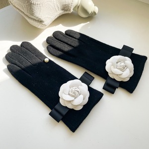 カメリアチャーム+リボン ニットグローブ・手袋(スマホ操作OK)ブラック FK00111