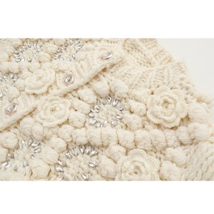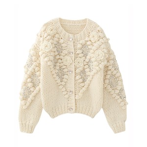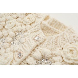 フラワー+ビジューデコレーション チャンキーニットカーディガン アイボリー NI00364