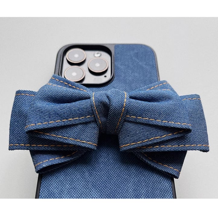 ビッグリボンをアレンジしたデニムコーティングのiPhoneケースです。デニム地に本格的なシングルステッチが入ったスタイリッシュなデザインです。デニムのように、1年を通してどんなスタイルにもフィットします◎ ソフトシリコン+デニムコーティングの丈夫なケースが大切なiPhoneを傷や破損から守ります。SNS映えもパーフェクトなiPhoneケースです。